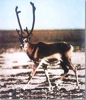 北美皮里驯鹿身材较小,白色,仅仅生活在加拿大极北的群岛上。体重在55~70 千克。1980年,北美皮里驯鹿的总数估计尚在3 300~3 600头,但现在已经被加拿大濒危野生动物保护委员会列为濒危种类。