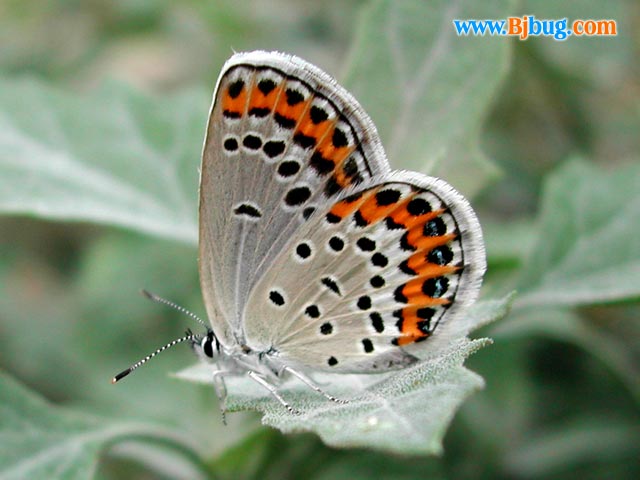 4简要介绍:雌雄异型,雄蝶翅面篮紫色,前翅无斑;后翅外缘有黑斑;