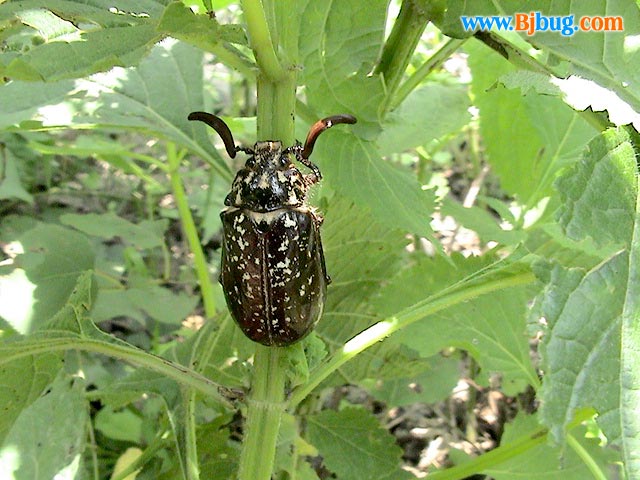 触角10节,雄虫有长而弯的鳃片7节,雌虫有短小鳃片6节;鞘翅有小刻点,无纵肋。
