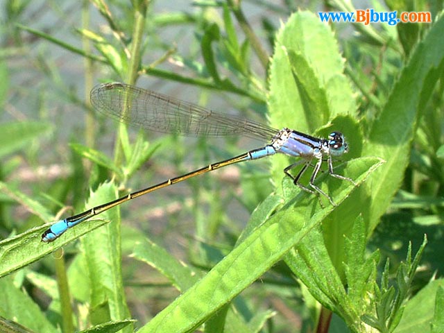 4昆虫种名:长叶异痣蟌 Ischnura elegans (Vanderl, 1820) 4所属类别:均翅亚目 蟌科 4拍摄时间:2001.07.28 拍摄地点:姚家园 4简要介绍:前胸后叶延长。 4虫体大小:体长22mm 4区域分布:北京