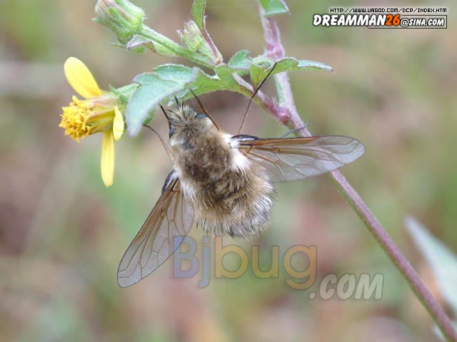 4昆虫种名:未知种类 4所属类别:双翅目 蜂虻科 4拍摄时间:2002.09 拍摄地点:金山 4简要介绍: 4虫体大小:体长8mm,翅展15mm 4区域分布: