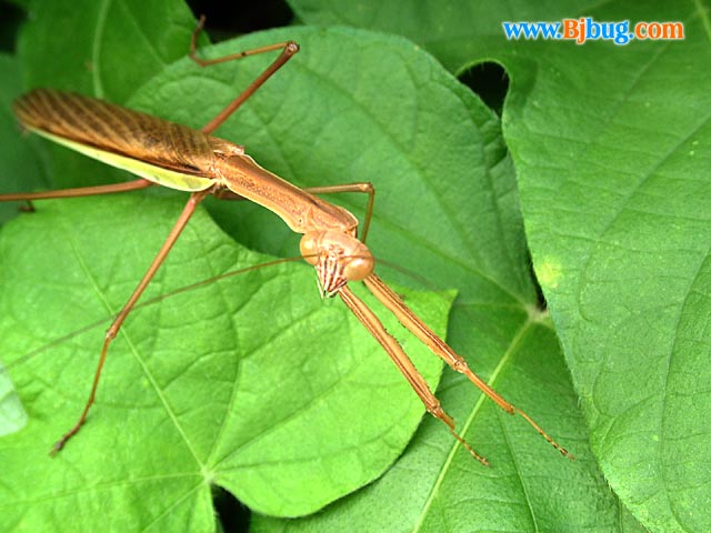 4昆虫种名:刀螳 Tenodera sp.感谢网友蒋澈协助鉴定 4所属类别:螳螂目 4拍摄时间:2001.08.04 拍摄地点:门头沟 4简要介绍:螳螂目成虫 4虫体大小:体长55mm 4区域分布: