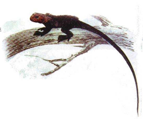 头较大,吻端钝圆,吻棱明显。眼硷发达。鼓膜*,无肩褶。体背鳞片具棱呈覆瓦状排列,背鳞尖向后,背正中有一列侧扁而直立的鬣鳞。四肢发达,前后肢有五指、趾,均具爪。头体长80-90毫米,尾长约为头体长的3倍。体浅灰棕色,背面有5-6条黑棕横斑;尾具深浅相间的环纹;眼四周有辐射状黑纹。喉囊明显。生殖季节雄性头部甚至背面为红色。体色可随环境而变。