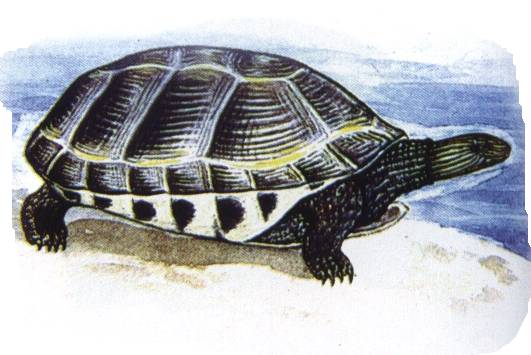 背甲长约26毫米、宽约153毫米、壳高85毫米左右。头较小、后部无滑无鳞。吻前向肉斜达喙缘,上喙缘有细锯齿。鼓膜不显。背甲略拱起,脊棱三条,两侧不显,后缘略呈锯齿状。腹甲平坦,前缘平切,后缘有深缺刻,有甲桥、腋盾与胯盾。指、趾间全蹼,爪细而直。头及颈部橄榄色,密布有细而窄的黄绿色纵纹。背甲棕色,脊棱色浅,边缘深色;盾片具较大的黄斑。腹棕*,每一盾片具有一块墨渍状斑。尾深棕色。