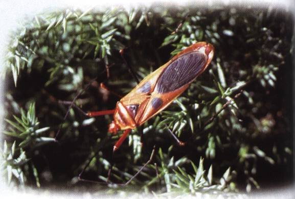 为大型红椿,体长30-50毫米;前胸背板宽7-8毫米。腹部宽7-8.6毫米。身体红色,披密集纤毛。雄虫触角细长,第1节约为头及前胸背板总和的2倍。前胸背板中部有亚三角形大斑;爪片中区有斜横纹,苹片中央有不规则的大斑。前翅膜片淡棕色。前足腿节红色,中、后足及腹板侧缝外的斑纹为棕至黑色。足细长,前足腿节粗壮,内侧有细齿,近端部有小刺。