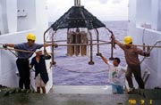 阶段。 60年代,国际海洋联合考察的次数越来越多,其中最主要的有:1960--1964年“国际印度洋调查”、1963--1965年国际赤道大西洋合作调查"、1965年夏季开始的"黑潮及邻海区合作调查"、1968年开始的“深海钻探计划”等。在国际印度洋考察中,使用了精密回声测声仪、电导盐度计等新型测量仪器和测定海洋生物生产力的新方法等,以划时代的观测精度,出色地完成了观测任务。发现了一系列的新海山、南纬15°附近冷涡、群岛上升流渔场等等。在黑潮合作调查中,由日本、美国、原苏联、中国、菲律宾、越南、泰国、马来西亚、印度尼西亚、澳大利亚、新西兰等国参加,发现了黑潮的起源及其分支、热带逆流,制成了用以水质化学分析的标准海水。