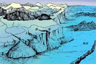 由大陆架向外伸展,海底突然下落,形成一个陡峭的斜坡,这个斜坡叫大陆坡。它像一个盆的周壁,又像一条绵长的带子缠绕在大洋底的周围。大陆坡的宽度在各大洋不一样,从十几公里到几百公里,平均宽度约70公里,坡度为几度至20多度,平均4°30′。它是地球上最绵长、最壮观的斜坡,全球大陆坡总面积约2800万平方公里,约占海洋总面积的12%。坡麓横切着许多非常深的大峡谷,称为海底峡谷,规模比陆地上穿过山脉的山涧峡谷既深又大。
