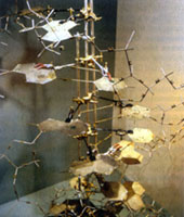 一连几天,沃森、克里克在他们的办公室里兴高采烈地用铁皮和铁丝搭建着模型。1953年2月28日,第一个DNA双螺旋结构的分子模型终于诞生了。