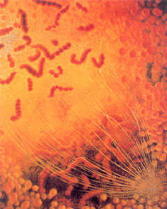 19世纪70年代后的20多年里,显微镜、切片机和化学染料的改进和发明,促进了细胞学的研究。1879年,德国生物学家W·弗莱明(1843~1915)就在细胞核内发现了一种可以被碱性红色染料染色的“微粒状特殊物质”,他称之为“染色质”。10年后,德国解剖学家瓦尔德耶尔(1836~1921)将染色质改称为“染色体”。此后,科学家们又发现了染色体与细胞分裂的关系,意识到染色体可能是遗传的重要物质,这就为孟德尔的遗传因子假说提供了可靠的证据。