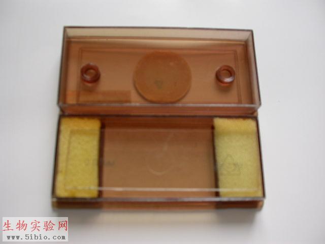 载物台上物镜测微尺刻度是用加拿大树胶和圆形盖玻片封合的。当除去松柏油时,不宜使用过多的二甲苯,以避免盖玻片下的树胶溶解。