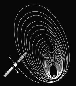 “智能1号”进入月球引力场路径示意图。