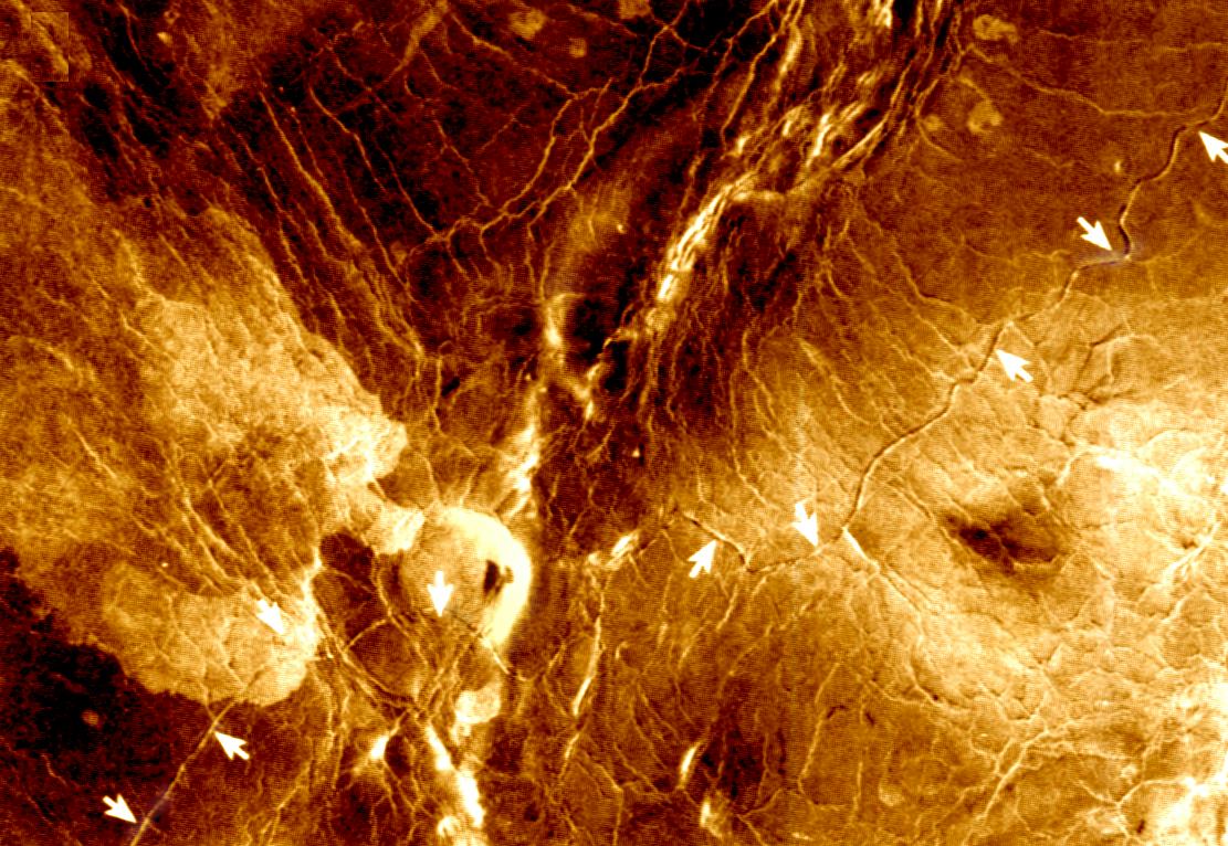 金星的巴尔提斯(Baltis)谷(箭头所示)