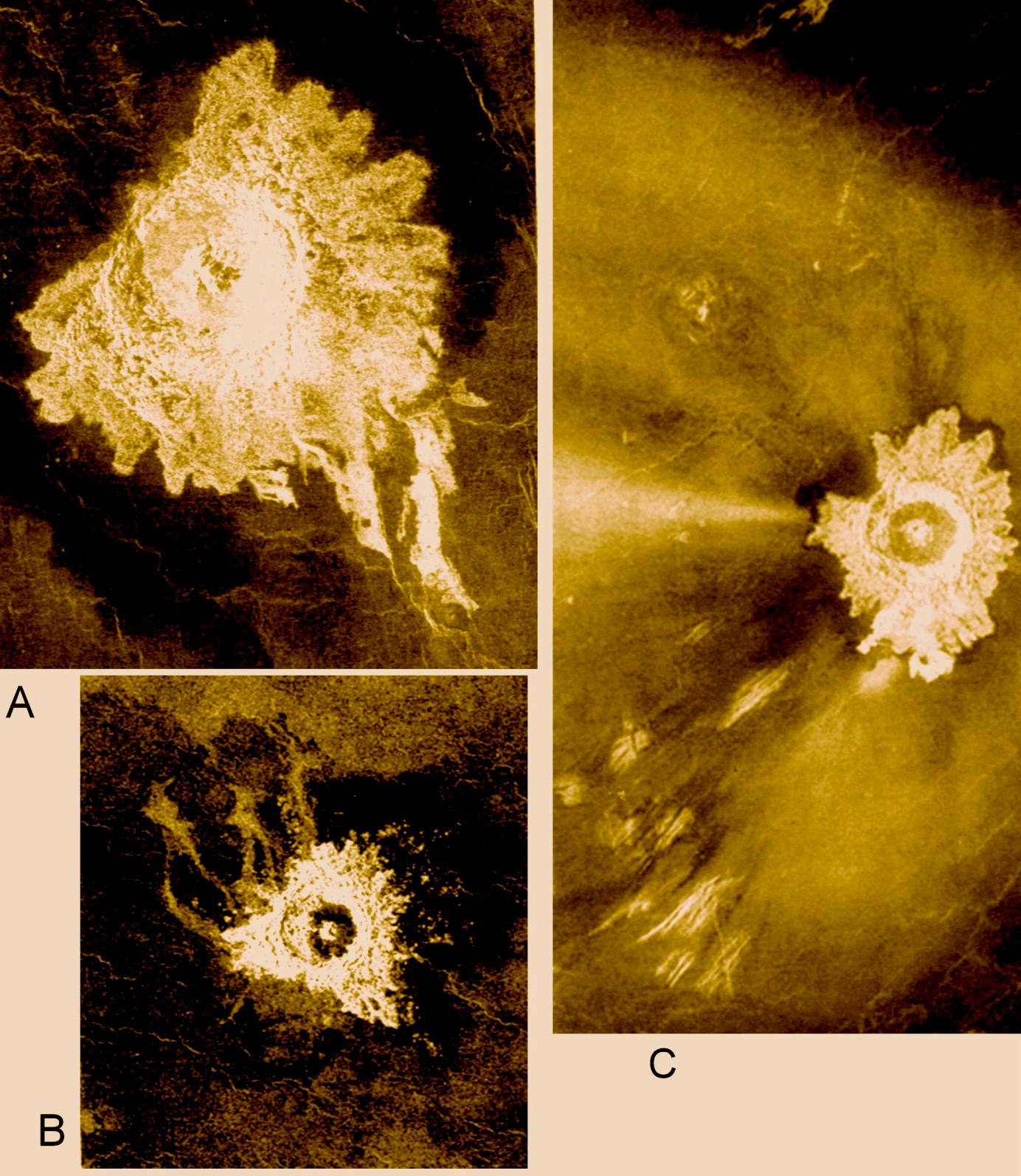 金星的“冕”(左,Bahet冕,230公里;右,Onatah冕,350公里)