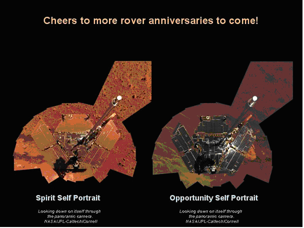 “勇气”号与“机遇”号都已环绕太阳运行了整整一大圈,终于迎来了它们第一个火星年!