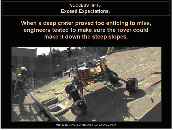 陨石坑虽具诱惑,但一不小心就容易走失。因此工程师们通过地面试验来确保火星车能够驶下陡峭的山坡。