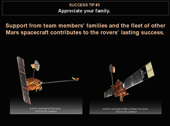 科学家们的家人以及众多其他火星探测器对“漫游者”行动的支持是最后成功的重要原因。