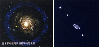 太阳系内行星光环的发现使人们对行星具有光环这个事实习以为常,但是,如果说星系也有光环,很多人必定会大吃一惊的。据英国《新科学家》杂志和英国广播公司近日的报道,英国和美国的两个研究小组宣布,在观测银河系外围时,他们分别发现了一段由恒星构成的、以银河系中心为圆心的圆弧,这两段圆弧离银河系中央的距离相等,这意味着它们可能是同一个银河系恒星环的不同部分。