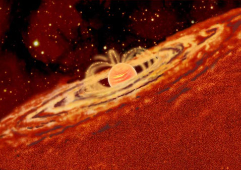 据科学家们介绍,在“行质天体”的周围也存在着由气体和尘埃物质组成的圆盘状结构,其特性有些类似于分布在原始行星周围的气态构造。从这些圆盘结构中会逐渐演化出行星和小行星。在此之前,褐矮星一直被认为是周围拥有原始行星盘结构的质量最轻的天体。专家