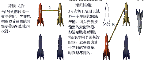爱尔兰物理学家乔治·佛兹杰拉德(1851──1901)提出,物质会在运动的方向上收缩(缩小),这意味着根据一个静止观察者的观点,一枚以接近光线运行的火箭所表现出的长度会比它静止时更短,尽管乘坐火箭的人看来并没有什么两样。爱因斯坦指出,任何物体以光速运动时,其长度将会缩短为零。