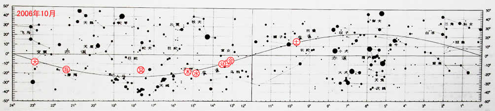 木星 在天秤座运行。日落时在西南方低空,亮度-1.7等左右,不久即落下。24日16时木星合月,木星在月亮北5°。