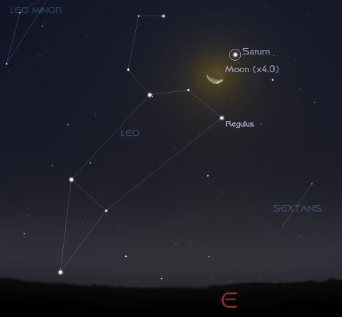 土星 在狮子座运行。约于凌晨1时30分升起,亮度0.5等左右。16日22时合月,土星在月亮南2°。