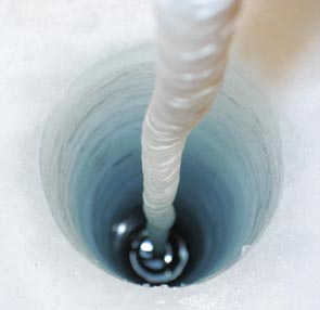 格陵兰顶峰营地(Summit Camp,Green-land)。一台热钻冰机的内部零件散乱地堆在桌上,一些还散落到圆顶式五人帐篷的木制地板上。5名来自美国喷气推进实验室(Jet Propulsion Laboratory,位于加利福尼亚的帕萨迪纳)的行星科学家灌了一肚子咖啡,正在更新这台长122厘米、宽7.6厘米的设备,不停地为它加装第一次野外试验所需的软件、固件(firmware)和硬件。帐篷的地板上切开了一个正方形的洞口,显露出将在这次野外试验中充当火星物质的冰层。