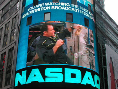 国际空间站上的活动15日首次在地球上进行了高清晰度电视直播,画面同步传输到地面,并在纽约的时代广场大屏幕电视上播放。