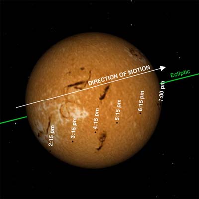 在那一天,大半个世界将会看到一个罕见的天文奇观——水星在内合点(inferior conjunction)穿越太阳盘面。届时,随着这颗距离太阳最近的行星缓慢移过太阳盘面,南北美洲、东亚、澳大利亚、新西兰的人们利用小型望远镜,能看到这一令人叹为观止的天文现象的全过程,或
