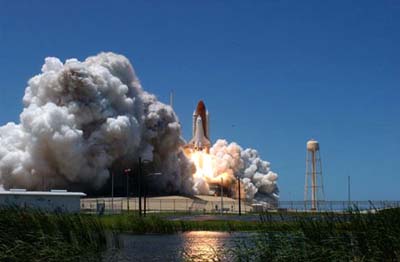 资料图片:2006年7月5日凌晨2点38分(北京时间)发现号航天飞机在发射升空。