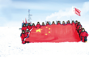 此次南极科考团中,一共有17名专家问鼎南极“冰穹A”。朱镇熹告诉记者,队员们到冰穹所做的第一件事,就是升上国旗,因为这代表着一种荣耀。那一天,南极澄澈的天空下,云彩呈现“放射状”,就如同孔雀开屏一样,把国旗映衬得格外美丽。