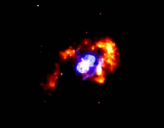 船底座伊塔(η)星是离我们较近的一颗大质量恒星。近年来,观测到它在发生令人迷惑的奇特变化。监测研究确定,它会爆炸为超新星。钱德拉(Chandra)X射线观测台发送回来这颗星及其周围星云的美丽图像,星云的物质层就是它“垂死挣扎”抛出来的。