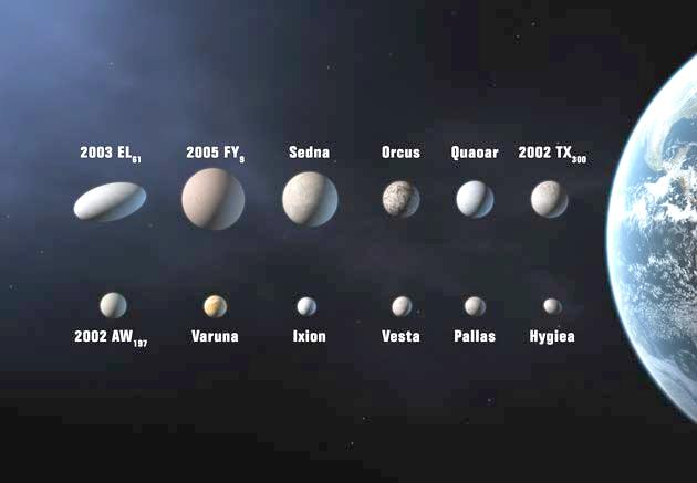 图为候选的矮行星(右为地球)