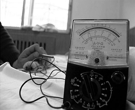 而老马能控制电压的玄机则藏在一条湿毛巾里面,老马在给别人做电疗的时候,总会在电线的头上包裹上湿毛巾,他就是靠控制握紧毛巾时的力度来调节电压的。
