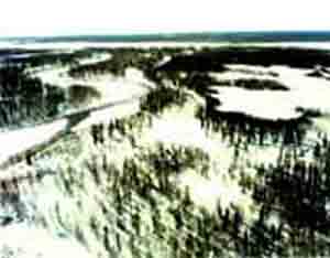说到北极的植物,当然还应该把亚北极地区的泰加林带也包括在内,因为这也是北极所特有的。 泰加林带是指从苔原南界树木线开始,向南1000多公里宽的北方塔形针叶林带。泰加林中树木纤直,高15~20米,但多长成密林,在高地上成片分布,其间低洼处,则交织着沼泽。林下土壤是酸性贫瘠的灰土,偏北和地势偏高的泰加林中,土壤表层下还有永久冻土层。