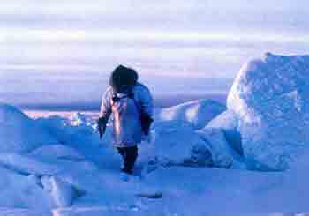 与南极一样,北极地区的陆地与岛屿上的茫茫冰盖,看上去遥远而宁静,似乎代表某种永恒的静止。但是实际上,由于冰雪自身的重量,陆地冰盖不断地向海岸方向移动,深沉缓慢而又无可阻挡。格陵兰内陆冰盖的年平均移动速度是几米,而在沿海则可达100~200米/年。