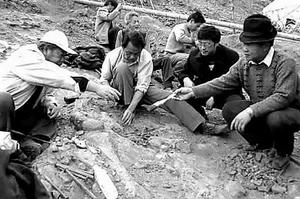 曾经出土过许多恐龙蛋化石、骨化石的浙江省天台县,最近邀请有“龙王”美誉的中国科学院古脊椎古人类研究所著名恐龙专家董枝明教授、中国地质科学院资源所矿物岩石学家陈克樵教授,首次对恐龙骨化石进行了科学的抢救性挖掘。经过近一周的工作,已发现了恐龙脊柱骨、肋骨、尾脊、小的甲片、前后肢等化石。