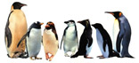 南极企鹅的共同形态特征是,躯体呈流线型,背披黑色羽毛,腹着白色羽毛,翅膀退化,呈鳍形,羽毛为细管状结构,披针型排列,足瘦腿短,趾间有蹼,尾巴短小,躯体肥胖,大腹便便,行走蹒跚。不同种的企鹅具有明显的特征,很容易辨认,南极7种企鹅的主要特点如下。