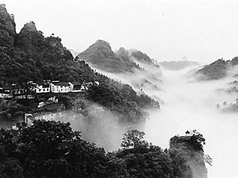 齐云山海拔高度仅585米,用“插天”来形容其高虽有些夸大,但有36奇峰、72怪岩、24飞涧,加之境内河、湖、泉、潭、瀑构成了一幅山清水秀、峭拔明丽的自然图画。白岳的特点是峰峦怪谲,且多为圆锥体,远远望去,一个个面目各异的圆丘,自成一格。主要景观有:洞天福地、真仙洞府、月华街、太素宫、香炉峰、小壶天、玄天太素宫、玉虚宫、方腊寨、五老峰、云岩湖等。齐云山碑铭石刻星罗棋布,素有“江南第一名山”之誉。该山道教始于唐乾元年间(公元758-760年),至明,道教盛行,香火旺盛,故成为我国四大道教名山之一。1981年列为省重点保护单位,1994年国务院公布为国家重点风景名胜区。