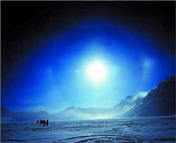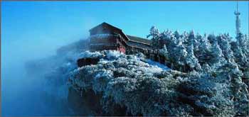 每年秋天,金顶飘扬的第一场大雪,都是成都平原的一个福音。再等到“立冬”一过,大坪便是雪花漫山飞舞。纷纷扬扬的雪花掠过一株株挺立的常绿乔木,积压在碧绿的枝头,漫山遍野都是琼枝玉叶,晶莹剔透。晶莹剔透的冰枝,银光闪烁的树挂、斑斓夺目的山峰,千奇百怪造型各异的冰雪世界,如絮如棉、如海如潮,令人如痴如醉。