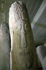 哈卡斯的石雕有各种各样的形状,有的呈圆柱形,有的是扁的,有的形状不规则。在太阳初升或夕阳西下时候,有些突然呈现出人脸的轮廓:眼睛、鼻子和嘴。石头上的人脸部分凿出好些深槽