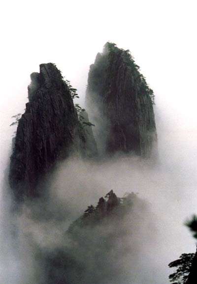 云门峰位于黄山西南部,石柱峰南面,与云际峰、浮丘峰相毗邻,为36大峰之一,海拔1645米。此峰岩壁分开如门,相对而工,高入天际,唯有云气可从中穿梭而过,故名“云门峰”、因两壁对峙。似一把剪刀,又名“剪刀峰”。明福建长乐人、文学家、曾任广西右布政史的谢肇制有诗曰:“寒流泱泱草蒙茸,翠壁丹梯千万重。天外云门相对出,居人指是剪刀峰。”明代龙膺亦有诗曰:“千帐莲开映碧空,两峰壁立断长虹。只容白鹤双飞入,直接星河一道通。”