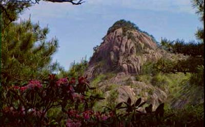 青鸾峰在黄山风景区内朱砂峰东北,天都峰东南,为36大峰之一,海拔1589米、整座山峰状若青鸾蹲立,故名。站在立马亭前眺望,它又酷似一匹腾空而立的战马,所以又名“立马峰”。宋人有诗曰:“卓立峋岩鸾风形,翩翩舞翠炫花纹。冲霄千载飞腾处,犹剩峰头一片云。”从对面山上眺望,峰顶有一巨石,如大臣端笏而立,又若天女靓妆觐帝。步移景换,妙趣横生。峰顶有“仙人打坐”石景,峰壁有“立马空东海,登高望太平”十个石刻大字。在立马桥上仰视,可见峰腰有第四纪冰川擦痕。峰下有采药源,相传黄帝在黄山炼丹时曾来此处采药。