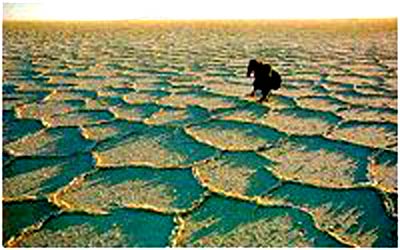 那里除了一些仙人掌以外没有其他植物生长。每个湖泊的色彩和结构各异,根据盐中所含的矿物质不同而呈砖红色、绿色、青绿色或银灰色。 另一个盐湖——科罗拉多湖的湖面往往被成千上万只圣詹姆斯红鹤所覆盖。它们的羽毛有着与湖泊同样深浅的红色。这些珍禽以细小的水藻植物为食物,这种水藻则生长在含盐的、近乎凝结的湖水中。