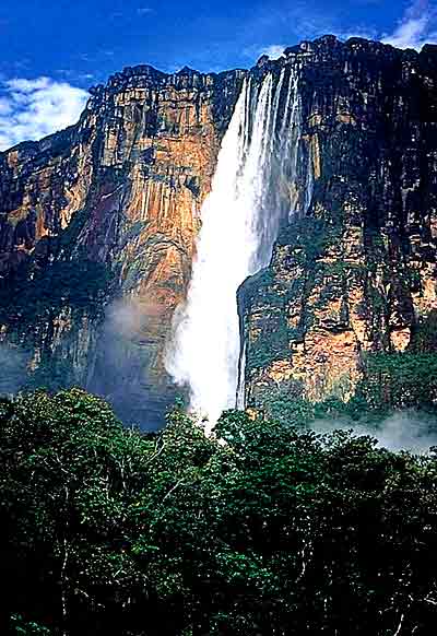安赫尔瀑布从德弗尔山上满青草的平坦山顶向下跌落979米,大约是尼亚加拉瀑布高度的18倍。瀑布先泻下807米,落在一个岩架上,然后再跌落172米,落在山脚下一个宽152米的大水池内。 这个地区的热带雨林非常茂密,不可能步行抵达瀑布的底部。雨季时,河流因多雨而变深,人们可以乘船去那里。在一年的其他时间里,只能从空中观赏瀑布。 德弗尔(山地人命名为奥扬特曾伊山)是一座平顶山或台地,可能形成于6500万年前的地壳上升运动。山顶因风化作用而被侵蚀出许多深坑。雨水集聚在这些裂隙和深坑内,然后漫过山腰涌出。 < 1 > < 2 >