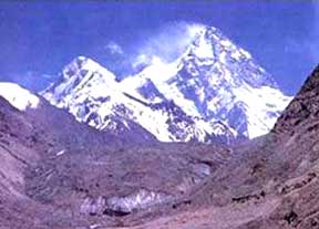 乔格里峰 塔吉克语“高大雄伟的山峰”,位于中国和巴基斯坦边界,海拔8611米,是地球上海拔仅次于喜马拉雅山脉的喀拉昆仑山脉的主峰。高度在世界14座海拔8000米以上的山峰中列第二位,是国际登山界公认的攀登难度较大的山峰之一。据西藏探险队队长、海峡两岸联合登山队大陆方面的队长桑珠介绍,乔戈里峰山势陡峭,地形复杂,攀登难度大,在个别重要路段还有严重的冰雪崩威胁。