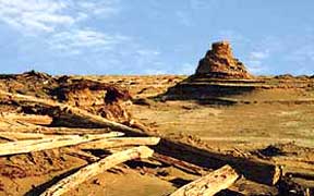 雅丹奇观 在若羌县境北部的罗布泊地区,有着大片“雅丹”风蚀地带,大至分布在罗布泊的东西北三面,其中以罗布泊东面的雅丹地形最为典型。这片风蚀地的范围,东西宽约35公里,南北长约100公里,面积达3500平方公里。这里的岗阜上,覆盖着一层白色的盐碱土层,有的是一层很厚的精盐,另有一部分岗阜,本身就是白膏泥,在清晨阳光的映照下,反射出灿烂的银光,因此古书称其为“白龙堆”。它即是楼兰东面的一道天然屏障,又是到楼兰去的必经之地。遍布罗布泊地区的雅丹亦称雅尔当,原是罗布泊地区维吾尔人对险峻山丘的称呼。