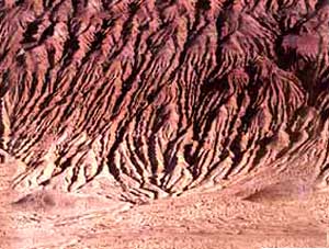 火焰山由红色砂岩组成 形似一条赤色巨龙,东起新疆的鄯善,西至吐鲁番, 横卧于吐鲁番盆地中部,全长98公里,南北宽9公里,一般高度500 米左右,最高峰在鄯善吐峪沟附近,海拔831.7米。据地质学家介绍,火焰山是天山东部博格达山南坡前山带一个短小的褶皱,形成于喜马拉雅造山运动期间,距今约有2000万年。