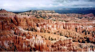 布赖斯峡谷位于美国犹他州帕绍甘梯高原的东端。它实际上并不是由河流切蚀而形成的峡谷,而是嶙峋的、呈半圆形的高原之端。 犹他州南部的地形呈巨大的梯形状。其顶部为布赖斯峡谷,海拔达2800米,最低一级位于大峡谷的边缘处。当地的派尤特人说该区“直立的红色岩石就像站在一碗形峡谷中的人群”。 约6000万以前,该地区淹没在水里,有一层由淤泥,沙砾和石灰组成的600米厚的沉积物。后来地壳运动使地面抬升。水逐渐排去,庞大的岩床在上升过程中裂成块状。岩层经风化后被刻蚀成奇形怪石。岩石所含的金属成分给一座座岩塔添上了奇异的色彩。
