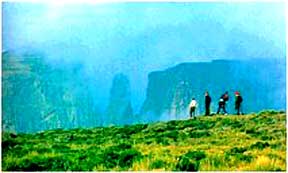 安菲西厄特悬崖 安菲西厄特是南非皇家纳塔尔国家公园内一个巨大的半圆形平顶悬崖区。悬崖区高1500米,顶端升到3000米左右。崖顶高地名叫“波丰”,当地语意思为“大角斑羚之地”。 安菲西厄特属于德拉肯斯山脉(即龙山),该山脉从好望角延伸到德拉土瓦,长1000千米。