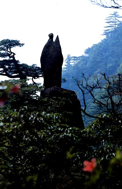 仙人指路位于云谷寺至皮篷路口一峰巅。其状似身着道袍的仙人,一手举起,似为游客指引进人皮篷之路,故名“仙人指路石”,又名“仙人指路峰”。